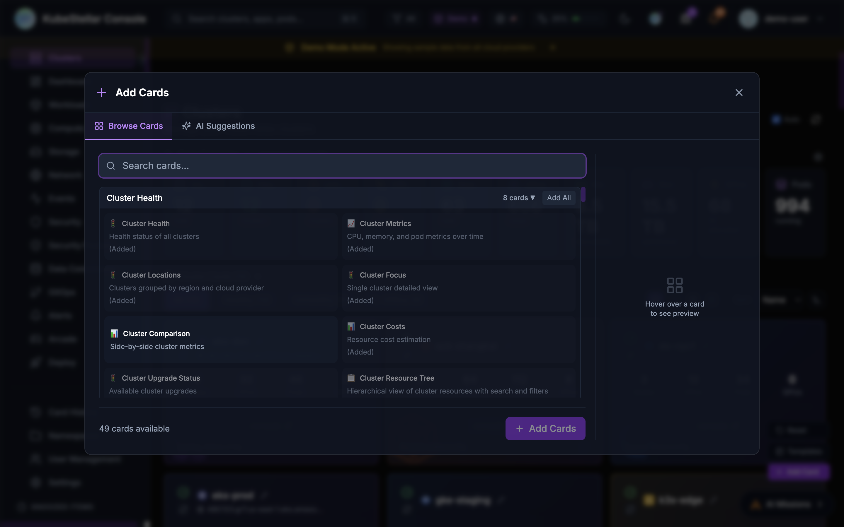 The KubeStellar Klaude Console is a modern, AI-powered multi-cluster management interface that provides real-time monitoring, intelligent insights, and a customizable dashboard experience for managing Kubernetes clusters at scale.