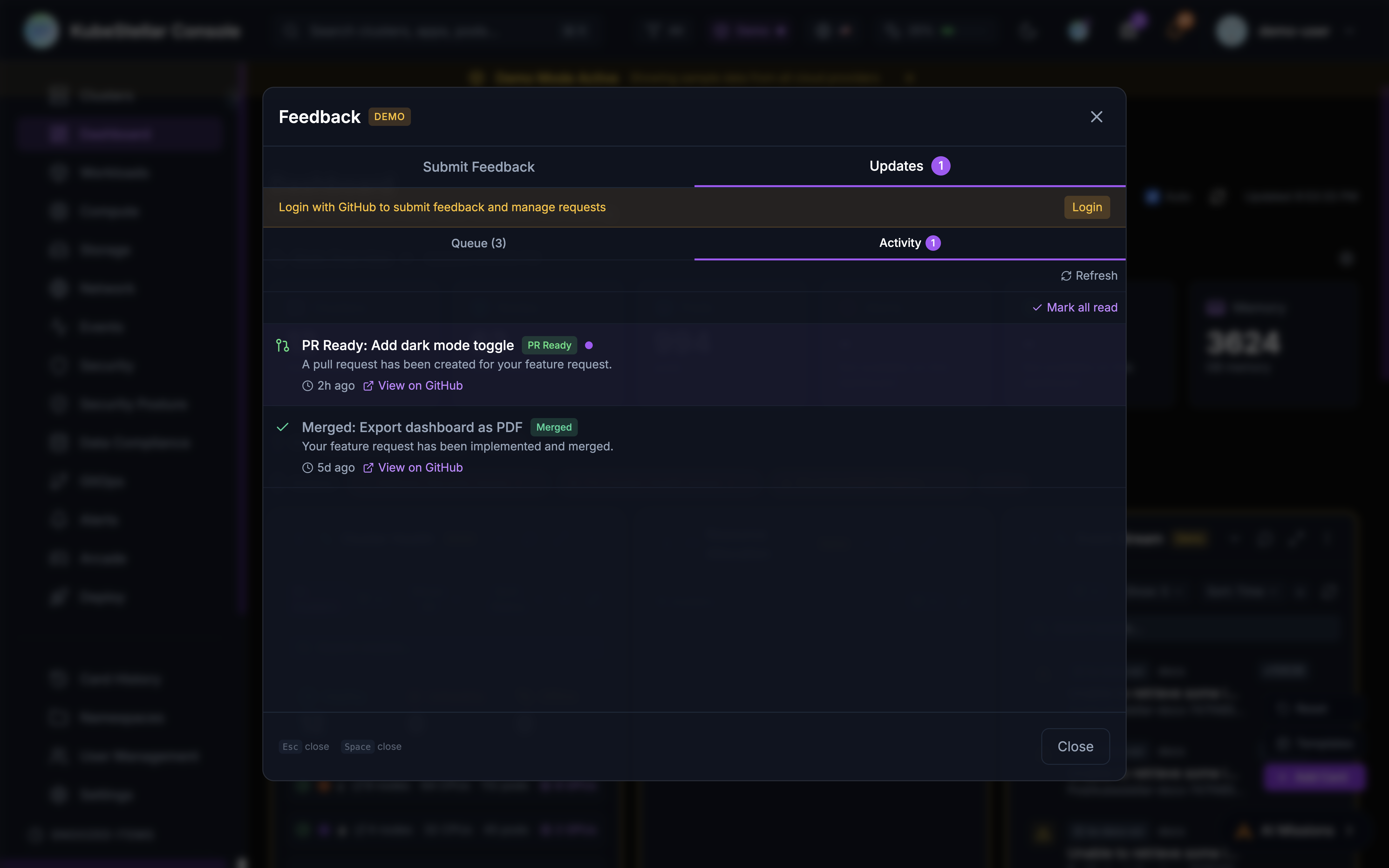 The KubeStellar Klaude Console includes a community rewards system to encourage engagement and contributions.